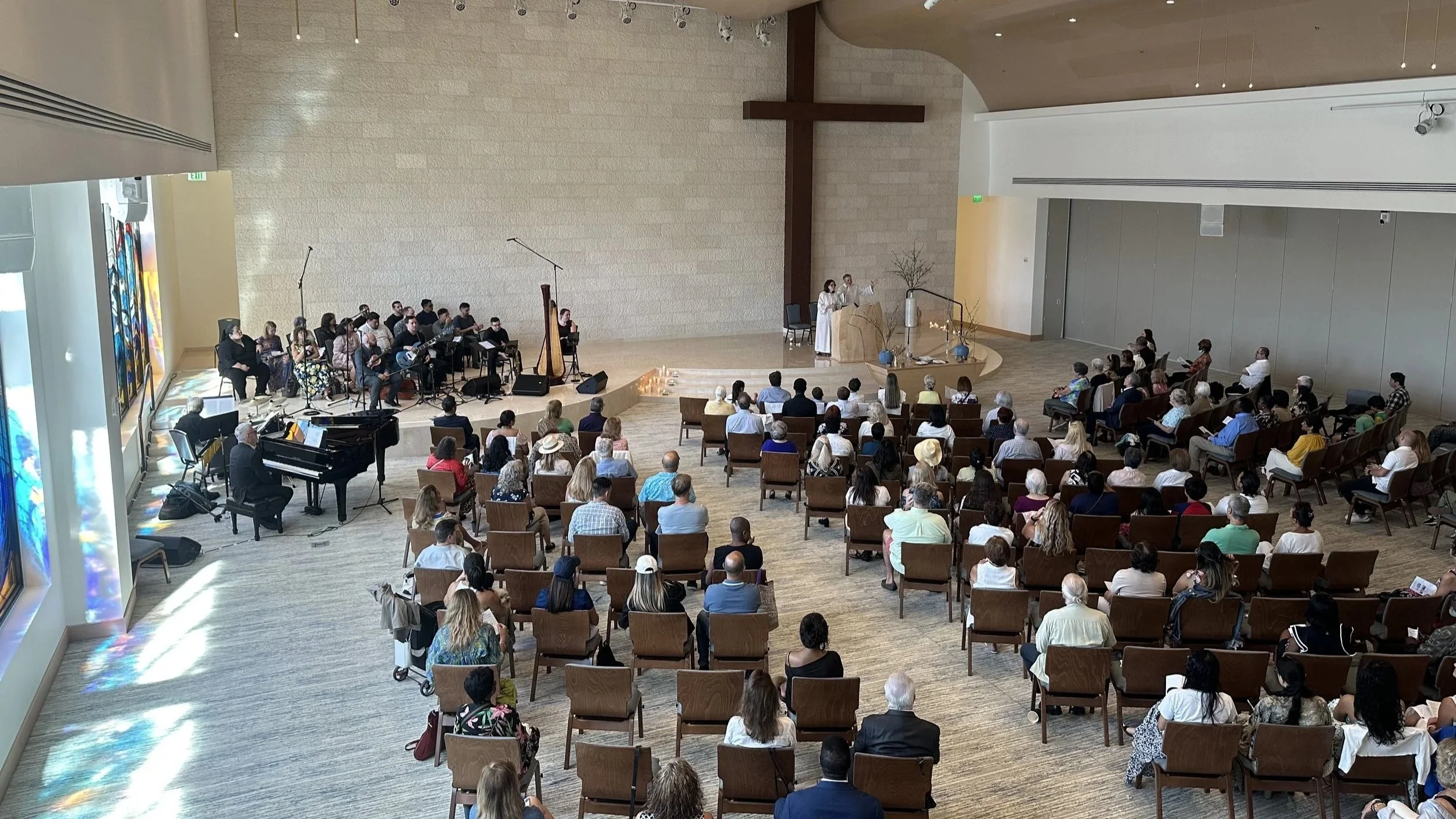 Translations: The service is translated into Spanish, Brazilian Portuguese, Russian, and German. Scan the QR code at the back of the Sanctuary to choose your language and listen to the translation! We encourage you to bring your own headphones but if you forget, we have some available to borrow.